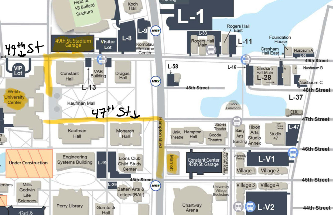 - DO NOT park in the Webb University Center VIP Lot – ONLY park in the 49th Street Stadium Garage.